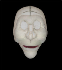 | The #1 question heard by Papa Rick is: What Are They Made Of? Puppets can have skin made of paper, fluffy fabric, wood, old socks (wash them first PLEASE), rubber-like compounds, or really anything at all. The puppets on this site are very large, usually standing about 3 feet tall. To keep them lightweight, they are made of polyurethane foam. The foam is then covered with fabric to protect it from turning yellow and crumbling. While the puppets might look like soft sculpture, there is no needlework involved. Under their skin, they have fully developed features. Here, take a look.