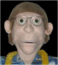| The #1 question heard by Papa Rick is: What Are They Made Of? Puppets can have skin made of paper, fluffy fabric, wood, old socks (wash them first PLEASE), rubber-like compounds, or really anything at all. The puppets on this site are very large, usually standing about 3 feet tall. To keep them lightweight, they are made of polyurethane foam. The foam is then covered with fabric to protect it from turning yellow and crumbling. While the puppets might look like soft sculpture, there is no needlework involved. Under their skin, they have fully developed features. Here, take a look.